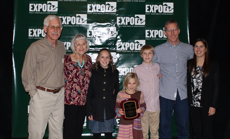 First photo: David Brink, left, and his son Nate, second from right, are joined by family members after receiving the Michigan Vegetable Council’s Master Farmer Award. Photos: Kristin Kazarian