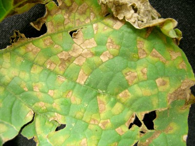 Downy mildew symptoms on cucumber. Photo: Mary Hausbeck, MSU.